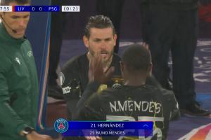 體育資訊04月15日訊 利物浦vs巴黎第38分鐘,門德斯傷退,盧卡斯·埃爾南德斯登場!