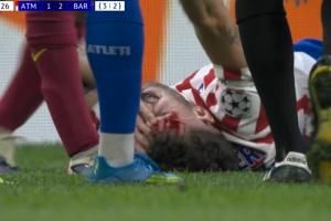 體育資訊04月15日訊 歐冠1/4決賽次回合,馬競vs巴薩,魯杰里被加維肘擊,倒地滿臉是血