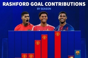 體育資訊4月15日訊 巴薩將在本輪歐冠再戰(zhàn)馬競,拉什福德的表現(xiàn)將至關(guān)重要,《轉(zhuǎn)會市場》統(tǒng)計顯示拉什福德本賽季直接參與進(jìn)球數(shù)已可排在生涯第4位。