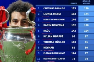 體育資訊4月15日訊 在歐冠淘汰賽次回合,利物浦0-2不敵巴黎。本場(chǎng)比賽薩拉赫替補(bǔ)登場(chǎng)沒(méi)有參與進(jìn)球,這也是他利物浦生涯歐冠最后一戰(zhàn)。德轉(zhuǎn)盤點(diǎn)了歐冠歷史參與進(jìn)球榜,其中薩拉赫位列第13位,具體如下(進(jìn)球+助攻):