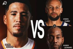 并且,因?yàn)樘柵琶?,主場能多賣一場票,太陽官方也曬出了宣傳海報(bào),主人公是布克、庫里、倫納德。