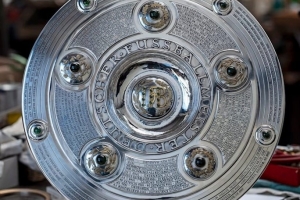 由于獎(jiǎng)盤(pán)上已經(jīng)沒(méi)有足夠空間刻下本賽季冠軍的名字,德國(guó)足球聯(lián)盟不得不定制了一個(gè)擴(kuò)展部件,在獎(jiǎng)盤(pán)外側(cè)增加了一個(gè)更寬的外環(huán),為未來(lái)30個(gè)賽季的德甲冠軍提供足夠的刻字空間。