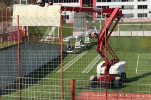 如今,需要增設(shè)訓練場地的拜仁打起了這個地塊的主意,即將拆除殆盡以迎接新空間。在對將來的施工現(xiàn)場的視察中,德雷森和弗洛因德還明確了一點:新的球場將與現(xiàn)有的1號和2號球場一樣,安裝一米高的視線防護欄,以便球隊進行全封閉訓練。拜仁高層讓工人在升降機上拉起一塊篷布,以此模擬視線防護欄的高度,以確保球星不被公眾窺視。這一建筑計劃恐怕不會讓拜仁球迷高興。畢竟,部分球迷會特意從德國各地趕來,只為看一眼他們的偶像。