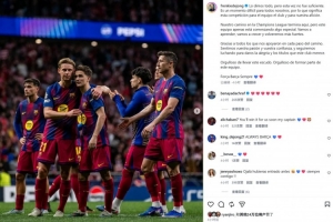 “我們已經(jīng)傾盡全力,但這次還是不夠。對(duì)于球隊(duì)、俱樂(lè)部以及我們的球迷來(lái)說(shuō),這是一個(gè)艱難的時(shí)刻,因?yàn)檫@項(xiàng)賽事對(duì)我們意義重大。我們?cè)跉W冠的征程到此結(jié)束,但這支球隊(duì)才剛剛開(kāi)始一段特別的旅程。我們會(huì)學(xué)習(xí),會(huì)成長(zhǎng),并且將以更強(qiáng)的姿態(tài)歸來(lái)。感謝每一位在每一步都支持我們的人。我們感受到了你們的熱情和信任,我們將繼續(xù)努力,為這個(gè)俱樂(lè)部帶來(lái)歡樂(lè)和榮譽(yù)。為能身披這身球衣而感到自豪,為能成為這支球隊(duì)的一員而感到自豪。永遠(yuǎn)的巴薩 ???? ”