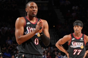 體育資訊4月16日訊 附加賽76人主場迎戰(zhàn)魔術(shù),馬克西穿著New Balance個人首款簽名鞋出戰(zhàn)。