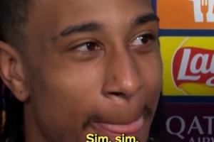 播吧4月16日訊 歐冠1/4決賽次回合比賽,拜仁主場(chǎng)4-3擊敗皇馬,兩回合總比分6-4晉級(jí),奧利塞攻入關(guān)鍵進(jìn)球,當(dāng)選此役最佳球員,賽后他接受采訪(fǎng)時(shí)發(fā)生了有趣的一幕。