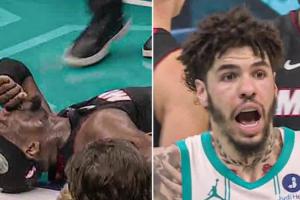 在昨日黃蜂戰(zhàn)勝熱火的附加賽上半場,拉梅洛·鮑爾倒地后手臂掃到了阿德巴約的腳踝,導致后者受傷退賽。