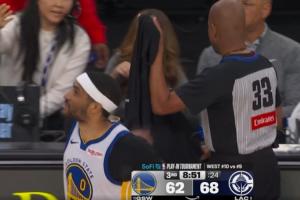 體育資訊4月16日訊 勇士vs快船的附加賽第三節(jié),裁判本·泰勒受傷離場。