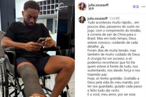 一切來(lái)得太突然…這幾天從比賽中的驚魂一幕,到肌腱斷裂,再到返回巴西接受治療,盡管匆忙,但上帝一直與我們同在。手術(shù)很成功,希望上帝守護(hù)我們,給我們力量,保我們平安。