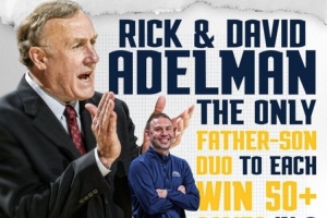 據(jù)統(tǒng)計(jì),大衛(wèi)·阿德爾曼和里克·阿德爾曼成為歷史首對均帶隊(duì)50+勝的父子教練組合。