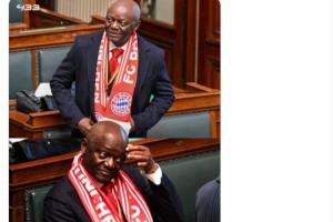 孔帕尼父親、比利時(shí)議員皮埃爾·孔帕尼今天戴著拜仁圍巾參加議會。