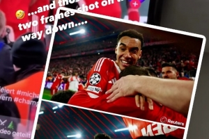 體育資訊4月17日訊 拜仁在本輪歐冠主場(chǎng)4-3逆轉(zhuǎn)絕殺皇馬,迪亞斯和奧利塞在比賽最后時(shí)刻連續(xù)轟出兩腳精彩世界波,也引燃了整個(gè)安聯(lián)球場(chǎng),奧利塞進(jìn)球后終場(chǎng)哨隨即響起,部分激動(dòng)的拜仁球迷甚至沖進(jìn)了場(chǎng)內(nèi),導(dǎo)致攝影師受傷。