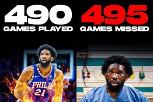 美媒ClutchPoints表示,恩比德NBA生涯至今缺席的場(chǎng)次比出戰(zhàn)的場(chǎng)次還多: