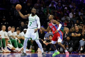 馬祖拉麾下球隊(duì)防守體系嚴(yán)密,換防彈性強(qiáng)、籃板保護(hù)到位,能有效限制對(duì)手外線出手與內(nèi)線沖擊。核心杰倫?布朗常規(guī)賽場(chǎng)均28.7分6.9籃板5.1助攻,塔圖姆傷愈復(fù)出后狀態(tài)穩(wěn)步回升,兩人組成的雙探花組合兼具攻堅(jiān)與組織能力,普理查德、豪澤等角色球員提供穩(wěn)定外線火力,替補(bǔ)陣容深度充足。