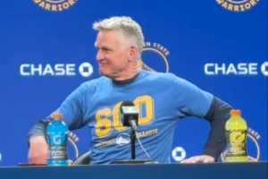 勇士回到主場(chǎng)迎戰(zhàn)籃網(wǎng),科爾賽前穿著600勝的紀(jì)念T恤接受采訪(fǎng),小吧整理了他的部分采訪(fǎng)內(nèi)容,具體如下: