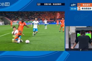 體育資訊04月17日訊 中超第6輪,青島海牛vs青島西海岸。比賽第31分鐘,葉博亞高速前插進(jìn)入西海岸禁區(qū),王庚睿倒地放鏟,主裁判第一時(shí)間判罰門球。