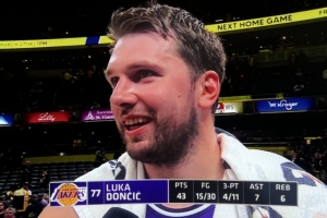 體育資訊3月26日訊 NBA常規(guī)賽,湖人客場(chǎng)137-130擊敗步行者,東契奇賽后在場(chǎng)邊接受了媒體采訪。