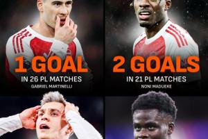 阿森納4名邊鋒總身價(jià)2.35億歐,本賽季英超合計(jì)打入14球。