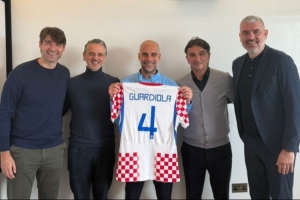 隨達(dá)利奇一同造訪曼徹斯特的還有技術(shù)總監(jiān)普萊蒂科薩以及教練組成員喬爾盧卡、盧卡·米蘭諾維奇,代表團向瓜迪奧拉贈送了一件其專屬的克羅地亞國家隊4號球衣以及一副定制的國際象棋。
