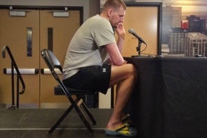 賽后,約基奇出席新聞發(fā)布會,腳踩一雙小黃人拖鞋,反差萌拉滿。
