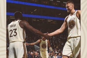 賽后球隊官方發(fā)布贏球海報,封面人物為內(nèi)線組合波爾津吉斯+追夢格林。