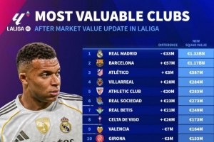 西甲球隊(duì)身價(jià)變化: