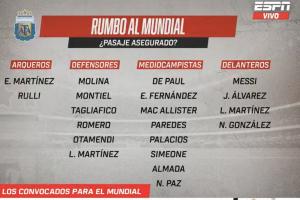 體育資訊03月26日訊 據(jù)ESPN阿根廷版報道,阿根廷世界杯名單中已有20名球員鎖定席位,剩余的6個名額將由16名球員爭奪。