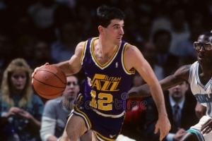 斯托克頓1962年3月26日出生于華盛頓州斯波坎,1984年NBA選秀,猶他爵士隊在首輪第16順位選中了他。斯托克頓的生涯全部效力于猶他爵士隊(1984-2003),共出戰(zhàn)1504場比賽,場均貢獻13.1分2.7籃板10.5助攻2.2搶斷,投籃命中率51.5%,三分命中率38.4%,罰球命中率82.6%,10次入選全明星(1989-1997,2000),并于1993年與卡爾·馬龍共享全明星MVP。