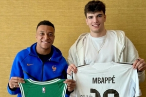 在活動(dòng)中,姆巴佩和凱爾特人前鋒烏戈·岡薩雷斯兩人交換了球衣。