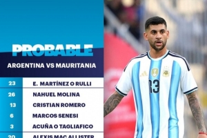 體育資訊3月27日訊 北京時(shí)間明天7點(diǎn)15分,阿根廷將在友誼賽中對(duì)陣毛里塔尼亞,TYC預(yù)測(cè)了阿根廷隊(duì)的首發(fā)陣容。