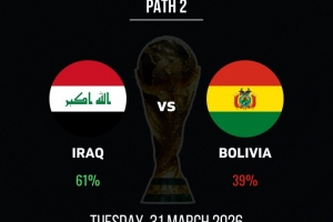 體育資訊3月29日訊 世預賽洲際附加賽,伊拉克將和玻利維亞爭奪一個世界杯參賽名額。本場比賽之前,伊拉克被認為有著61%的晉級概率。