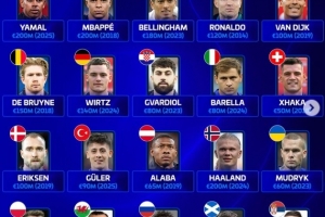 體育資訊3月29日訊 德國(guó)轉(zhuǎn)會(huì)市場(chǎng)盤點(diǎn)了歐足聯(lián)旗下各隊(duì)歷史身價(jià)最高球員,亞馬爾、哈蘭德和姆巴佩2億歐并列榜首,C羅最高1.2億歐。