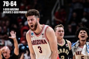 體育資訊3月29日訊 今天結(jié)束的一場NCAA錦標(biāo)賽8強(qiáng)戰(zhàn),亞利桑那大學(xué)79比64擊敗普渡大學(xué),晉級4強(qiáng)。