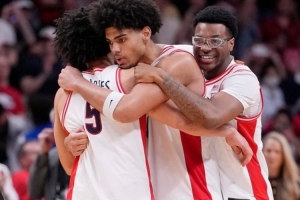 體育資訊3月29日訊 NCAA瘋?cè)鲄^(qū)決賽,亞利桑那大學(xué)79-64擊敗普渡大學(xué),殺入終極四強。