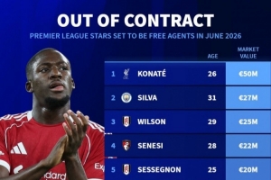 體育資訊3月29日訊 德國(guó)轉(zhuǎn)會(huì)市場(chǎng)列出了今夏合同到期英超球員身價(jià)排名,科納特5000萬(wàn)歐居首,B席2700萬(wàn)歐次席。