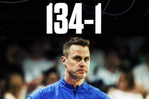 據(jù)統(tǒng)計,杜克大學(xué)成為NCAA瘋狂三月歷史中唯一一支半場領(lǐng)先15+卻輸球的1號種子,此前134勝1負(fù)。