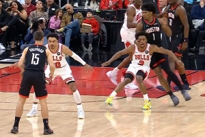(火箭還被吹了一個(gè)技術(shù)犯規(guī),塞克斯頓三罰后公牛還有球權(quán))