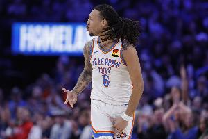 體育資訊3月24日訊 NBA常規(guī)賽,雷霆半場(chǎng)65-43領(lǐng)先76人。