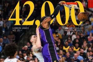 此役,湖人球星詹姆斯通過(guò)扣籃拿下生涯常規(guī)賽第42000分!