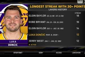 湖人隊(duì)史連續(xù)30+場(chǎng)次: