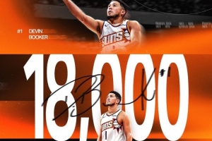 本場(chǎng)比賽之前,布克的生涯總得分為17966分,在第四節(jié)他拿到個(gè)人第34分后,布克的生涯總得分達(dá)到18000分。