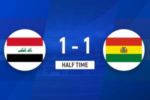 上半場(chǎng)補(bǔ)時(shí)5分鐘,伊拉克1-1玻利維亞。