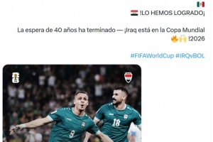 伊拉克時(shí)隔40年重返世界杯,伊拉克隊(duì)官方社媒用阿拉伯語、英語、西班牙語寫道:“我們做到了,40年的等待結(jié)束,伊拉克晉級2026年世界杯!”