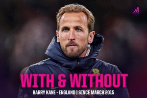 體育資訊4月1日訊 英格蘭在友誼賽中0-1不敵日本,凱恩缺席此役,Opta統(tǒng)計了凱恩在場、缺席情況下英格蘭隊的戰(zhàn)績。