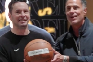 賽后湖人全體祝賀八村塁、東契奇和詹姆斯達成里程碑,而湖人總經(jīng)理佩林卡也為雷迪克準(zhǔn)備了執(zhí)教生涯100勝的驚喜,為其送上了紀(jì)念籃球,雷迪克的兒子也為其送來祝賀視頻。
