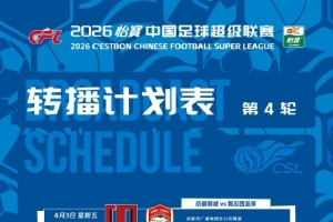 體育資訊4月2日訊 中超第4輪將于4月3日-4月5日進行,中超官方公布本輪轉播計劃,CCTV16直播海港vs玉昆,CCTV5+直播浙江隊vs銅梁龍。