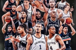 賽后,馬刺官方也曬出了全陣容的海報,并寫道:“??2026年西南賽區(qū)冠軍???!?/p>