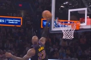 GIF-詹姆斯跟防大帽扇飛華萊士