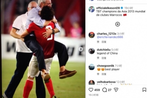 艾克森在社媒配文寫道:那年奪得了2013年亞冠聯(lián)賽冠軍,并參加了世俱杯比賽。
