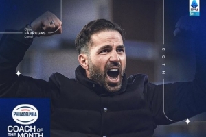 體育資訊4月3日訊 意甲聯(lián)賽官方消息,科莫主教練法布雷加斯當(dāng)選三月份意甲最佳教練。